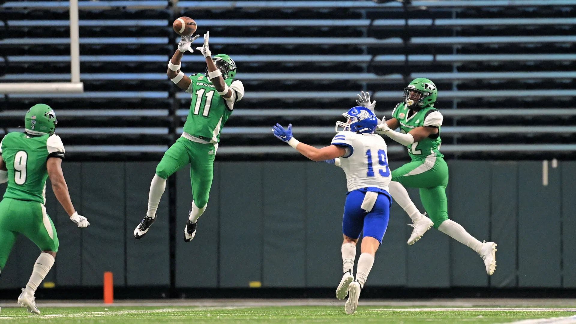 Luke Skokna and Isaiah Smith combined for 248 yards and two touchdowns with Smith leading the Hawks with 125 yards and a score on 12 carries. It was both backs first 100-yard rushing games. Defensively Jordan Canady and Jayson Coley each posted big returns from interceptions as the defense pressured the Bulldogs and stopped them behind the line of scrimmage seven times.