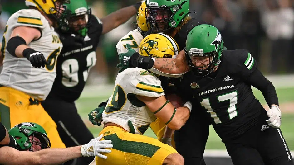 The Fighting Hawks found yardage in short bursts and converted five third downs to North Dakota State’s three, two turnover on downs – including one on UND’s 20-yard line – made the difference for NDSU. Reinholz converted his third field goal to put the Bison ahead with 6:54 remaining in the fourth.
