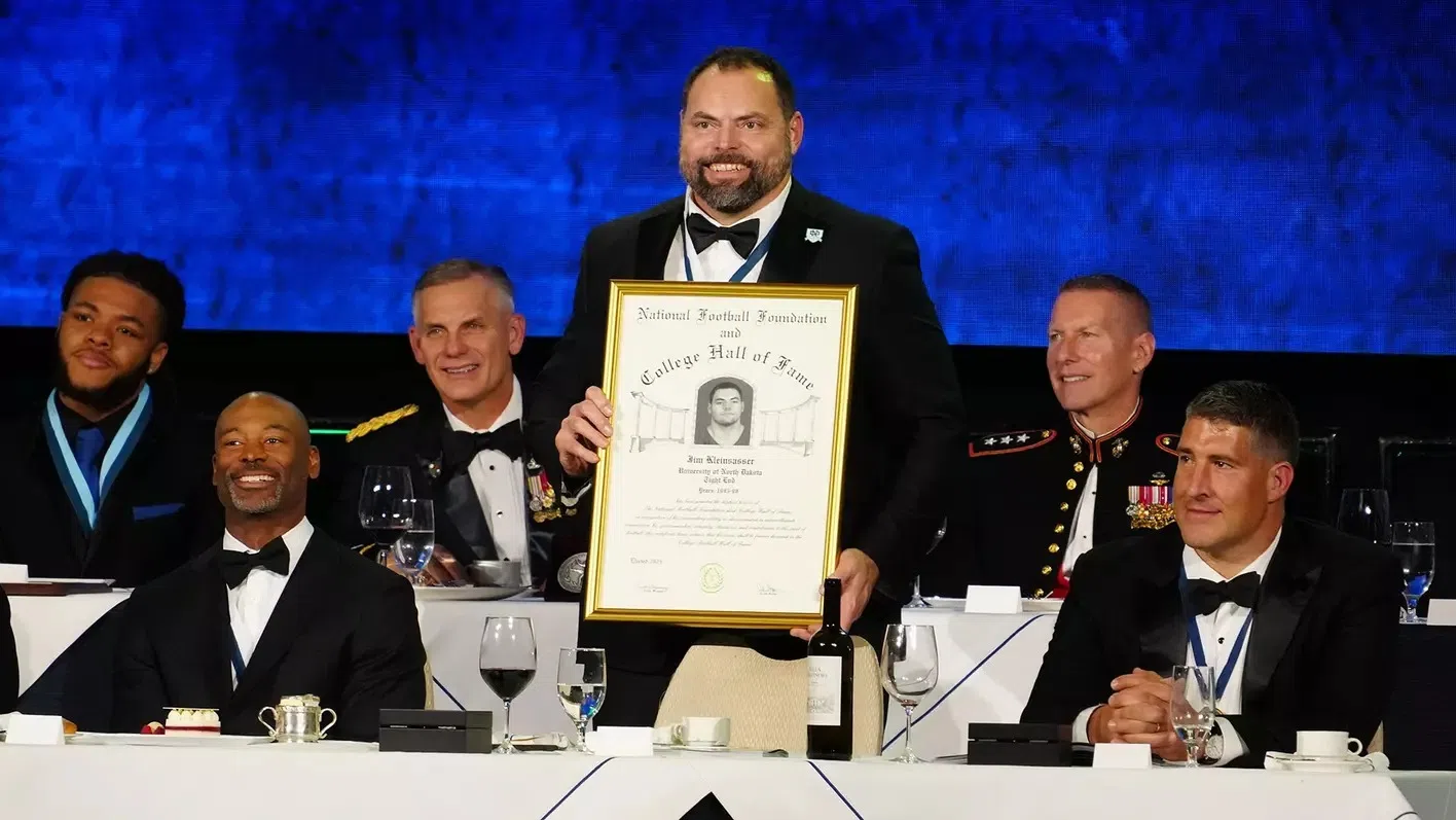 LAS VEGAS, Nev. (UND Athletics)– One of the best tight ends in North Dakota history, Jim Kleinsasser (1995-98), was one of 18 players officially inducted into the National Football Foundation (NFF) & College Football Hall of Fame late Tuesday night.