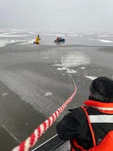BAUDETTE, Minn. (KFGO) - A man is safe after he had to be rescued from the ice of Lake of the Woods in far northern Minnesota...